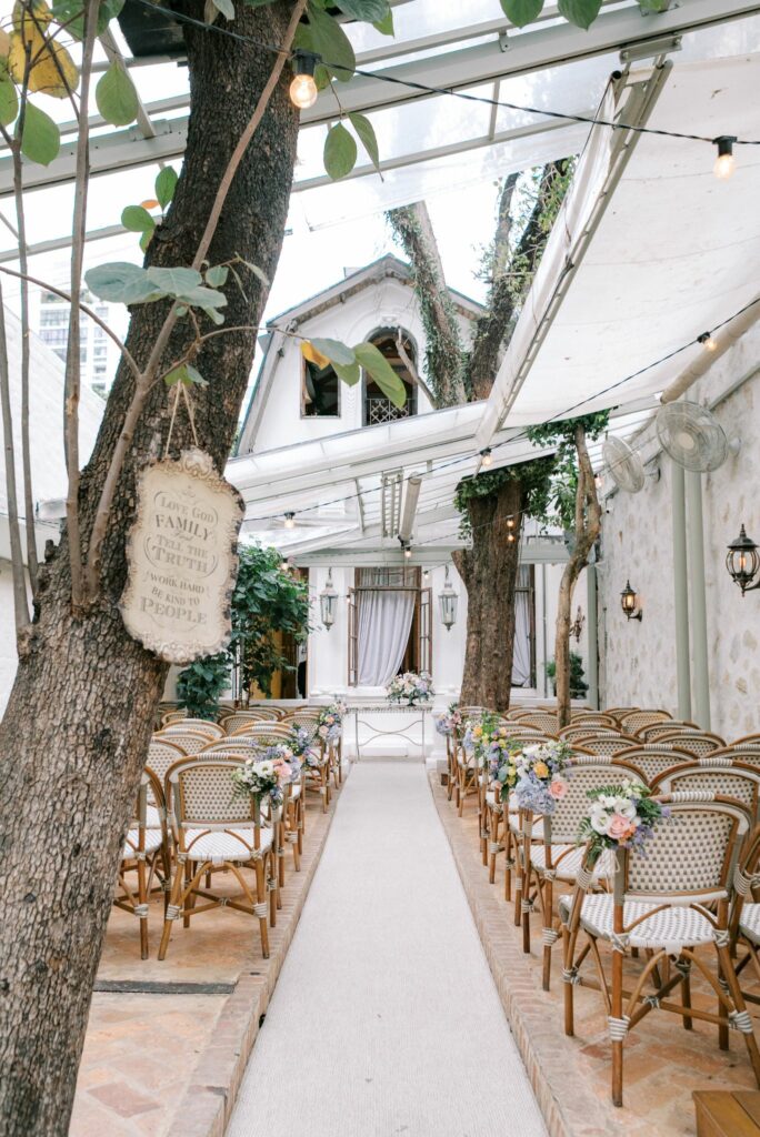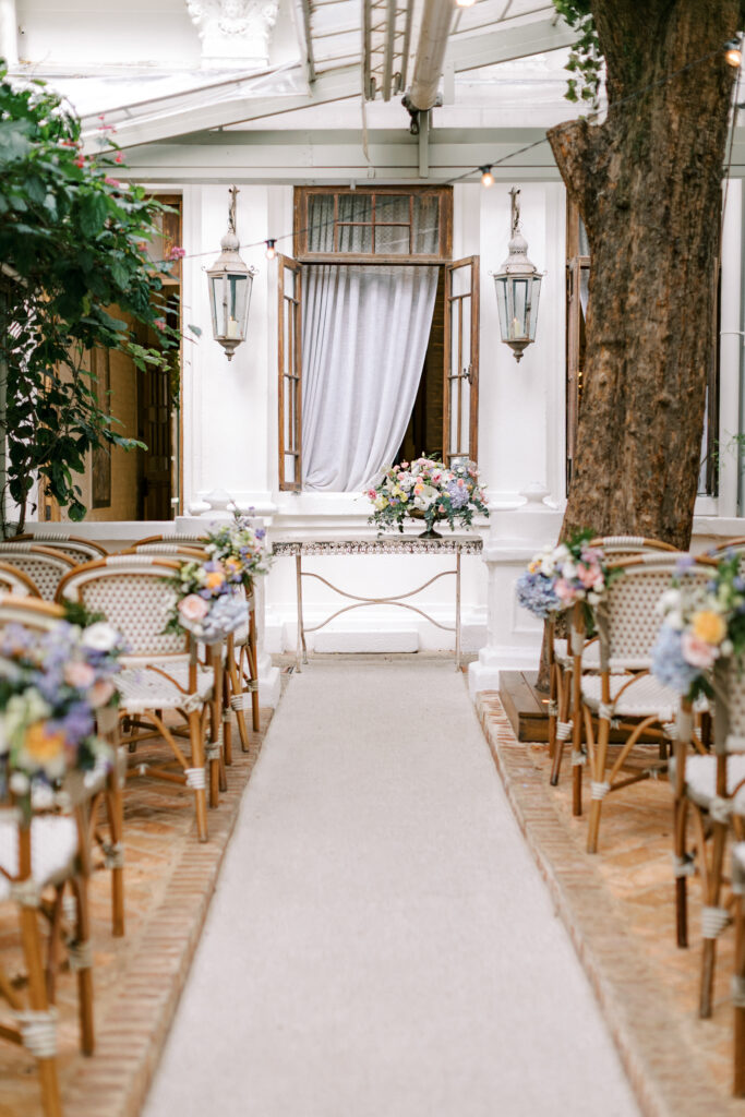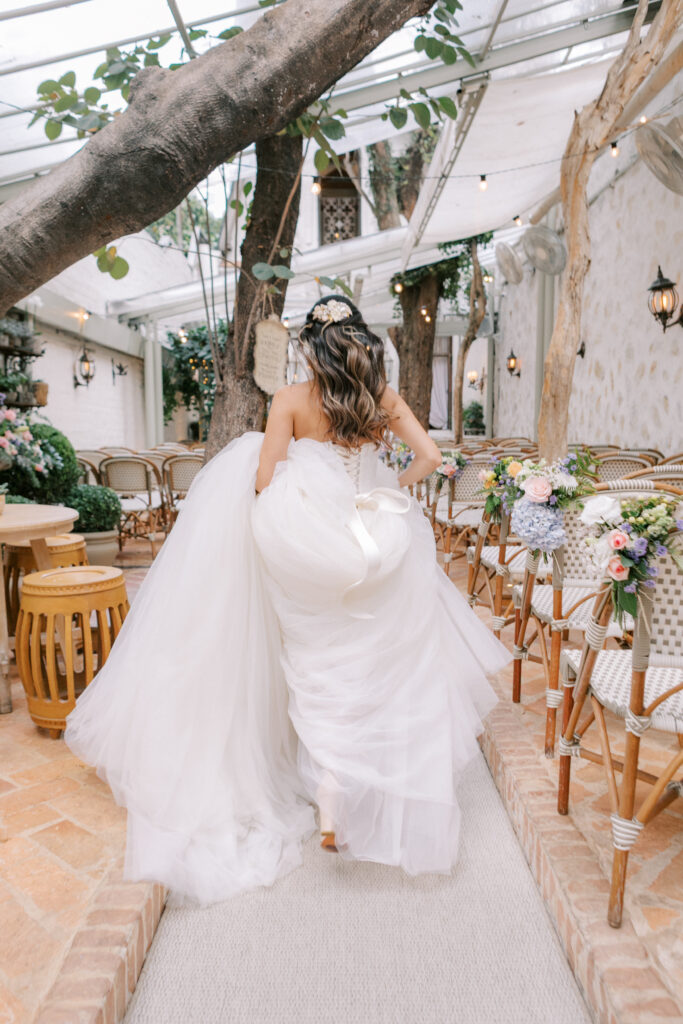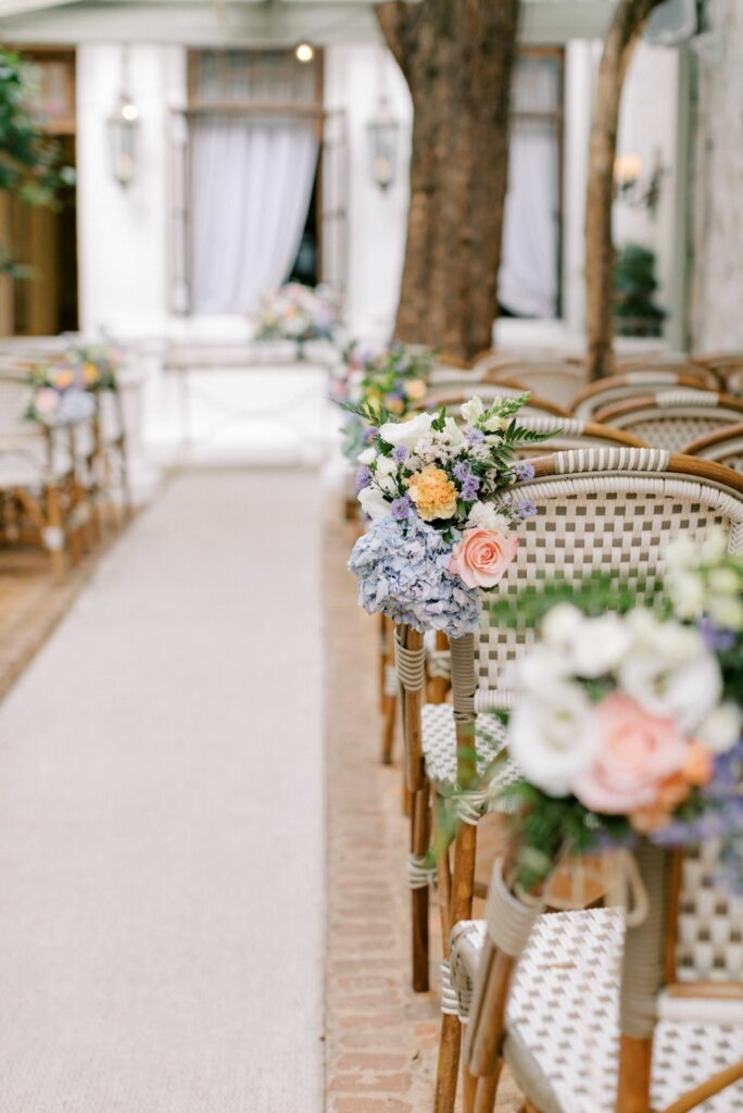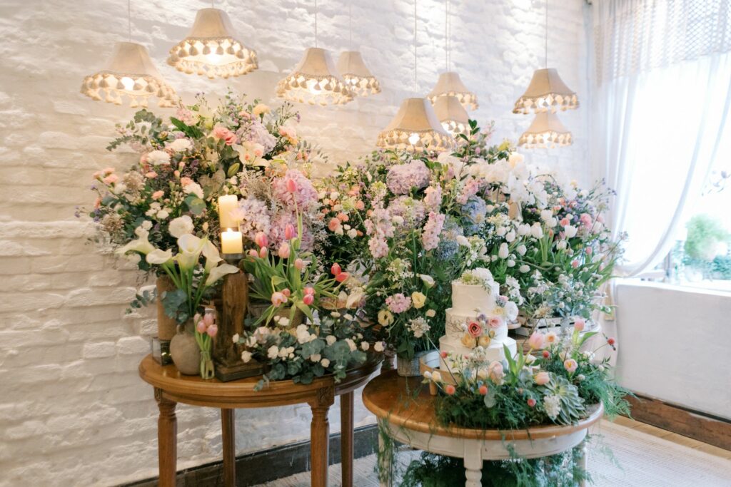 No Espaço Quintal, lugar onde o passado encontra o presente com delicadeza, criamos uma decoração que celebra o amor com sutileza e alma. As flores escolhidas para os arranjos foram hortênsias, rosas, lisianthus e orquídeas, e formaram composições que pareciam flutuar no ar, trazendo leveza e poesia para cada cantinho da celebração.