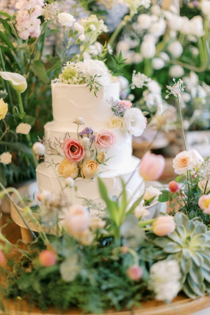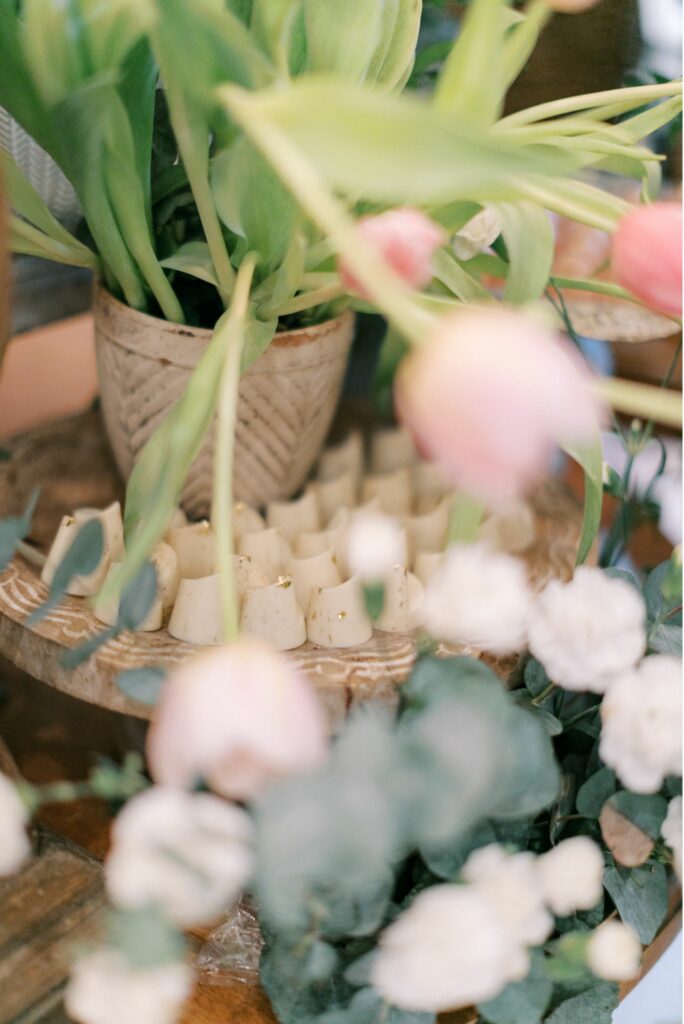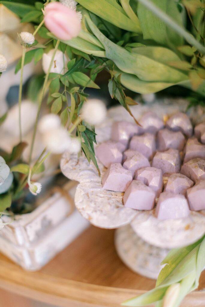 Os tons escolhidos: lilás, azul, rosa e champanhe, criaram uma paleta suave, despertando sensações de paz, harmonia e encanto. Essa combinação, delicadamente aplicada em arranjos florais, tecidos e detalhes da mesa de doces, valorizou a luz natural e conversou com a arquitetura acolhedora e o jardim vivo do Espaço Quintal.