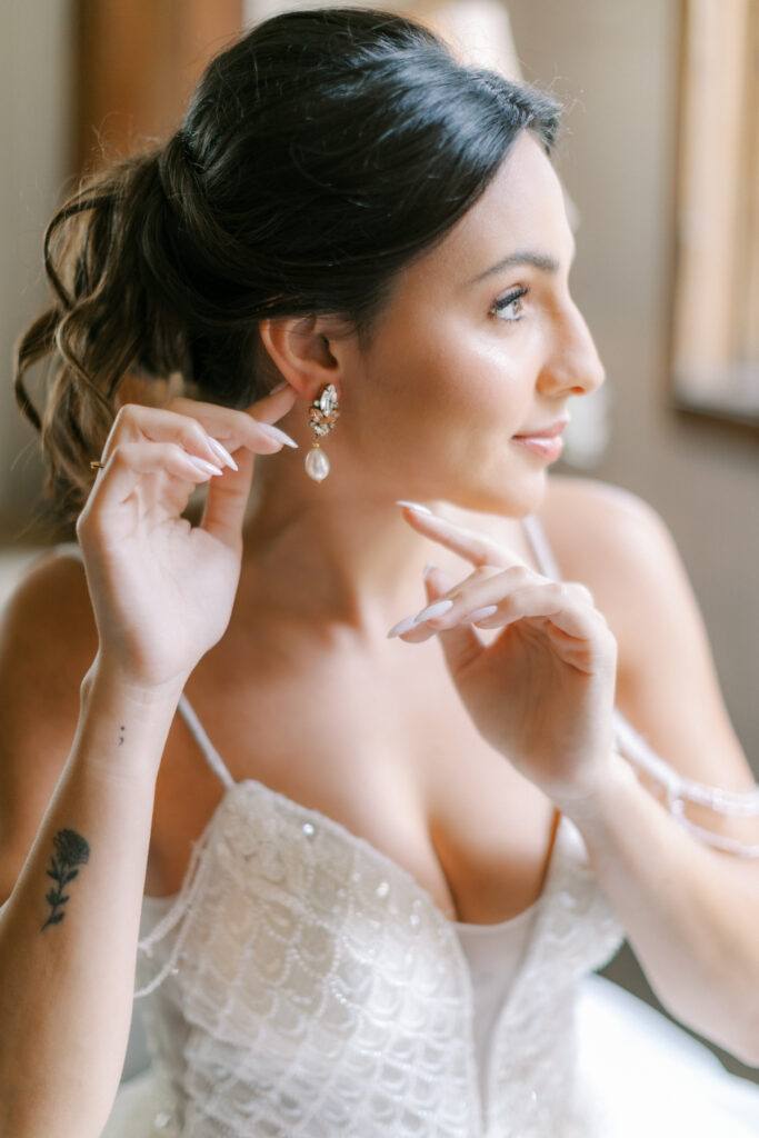 O brinco Miah, com cristais e pérola na versão antique, trouxe o toque de sofisticação atemporal.