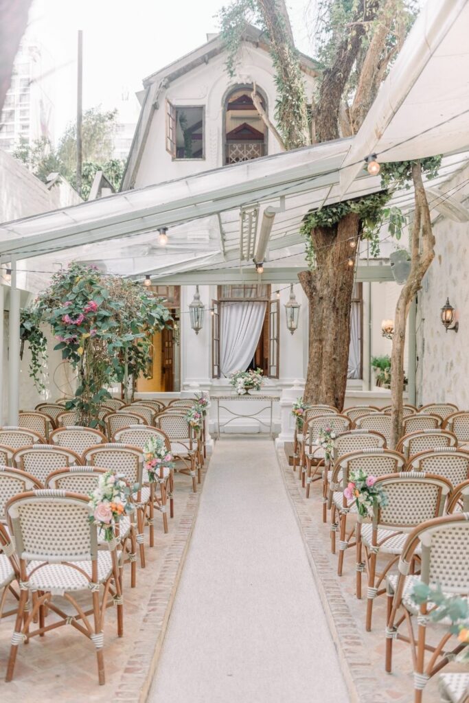 Peça para que a iluminação esteja pronta com antecedência e, se possível, inclua um momento para fazer registros já com o cenário montado, antes da chegada dos convidados.