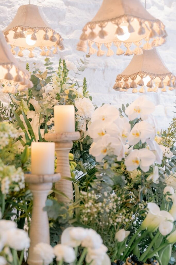 - Caminhos iluminados com velas flutuantes ou lanternas no percurso até o altar.